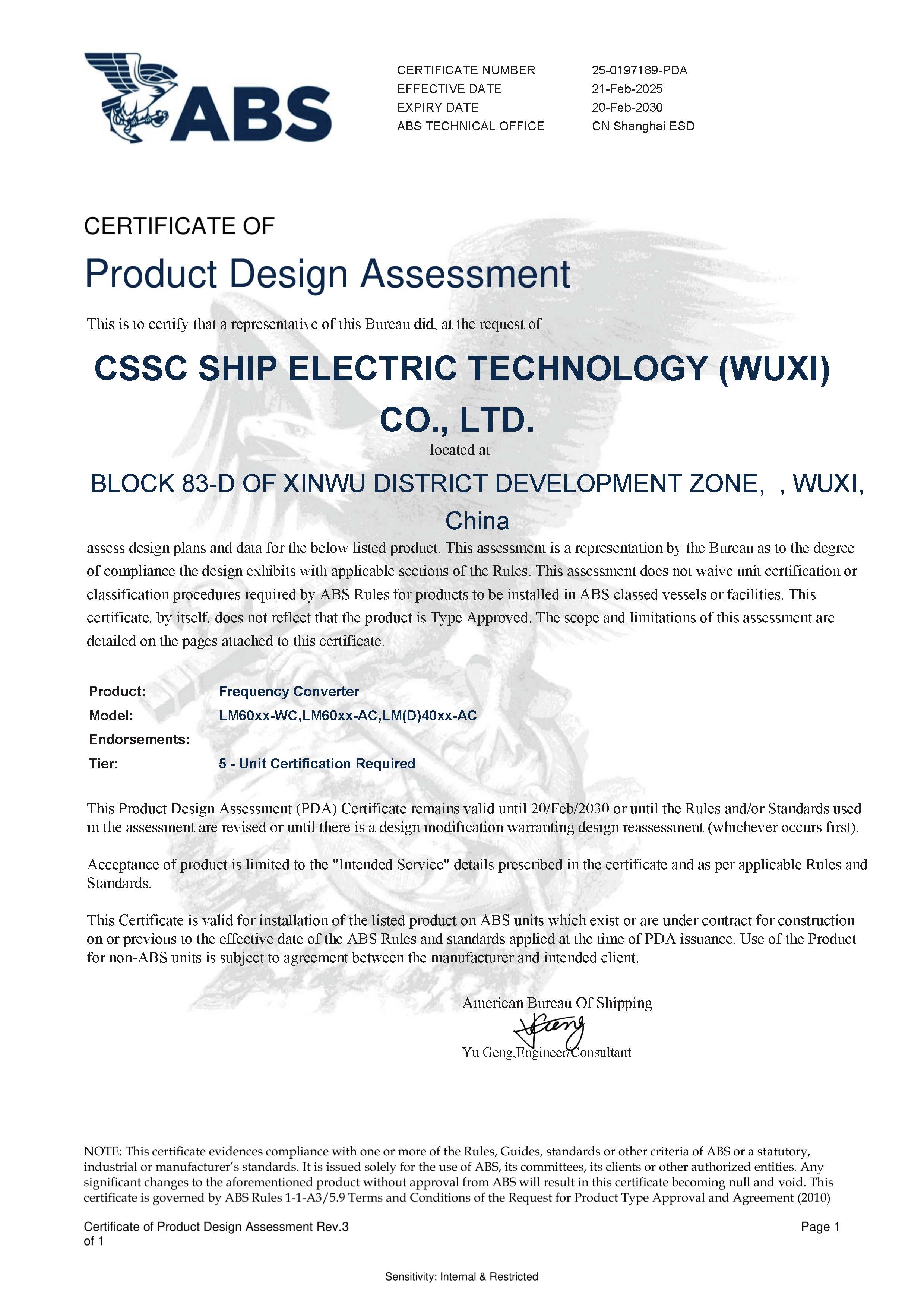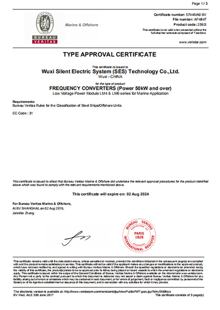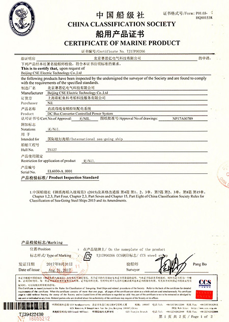 低壓船用核心功率模塊系列產(chǎn)品獲得了中國船級社、法國船級社、挪威船級社等主流船級社的型式認可,