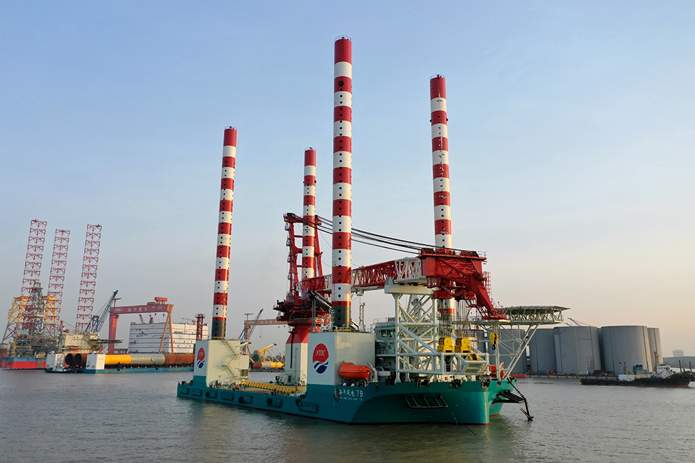 “海洋風(fēng)電79”總長110.4米,型寬42米,型深8.5米,設(shè)計吃水5.3m,樁腿長91.6m,單船電力推進(jìn)功率最大達(dá)到8000kW,賽思億為其供貨3臺艏側(cè)推變頻器、3臺艉推進(jìn)變頻器、3臺艏側(cè)推電機(jī)、3臺艉主推電機(jī)、側(cè)推系統(tǒng)和舵槳系統(tǒng)等,核心產(chǎn)品采用賽思億自主知識產(chǎn)權(quán)產(chǎn)品。