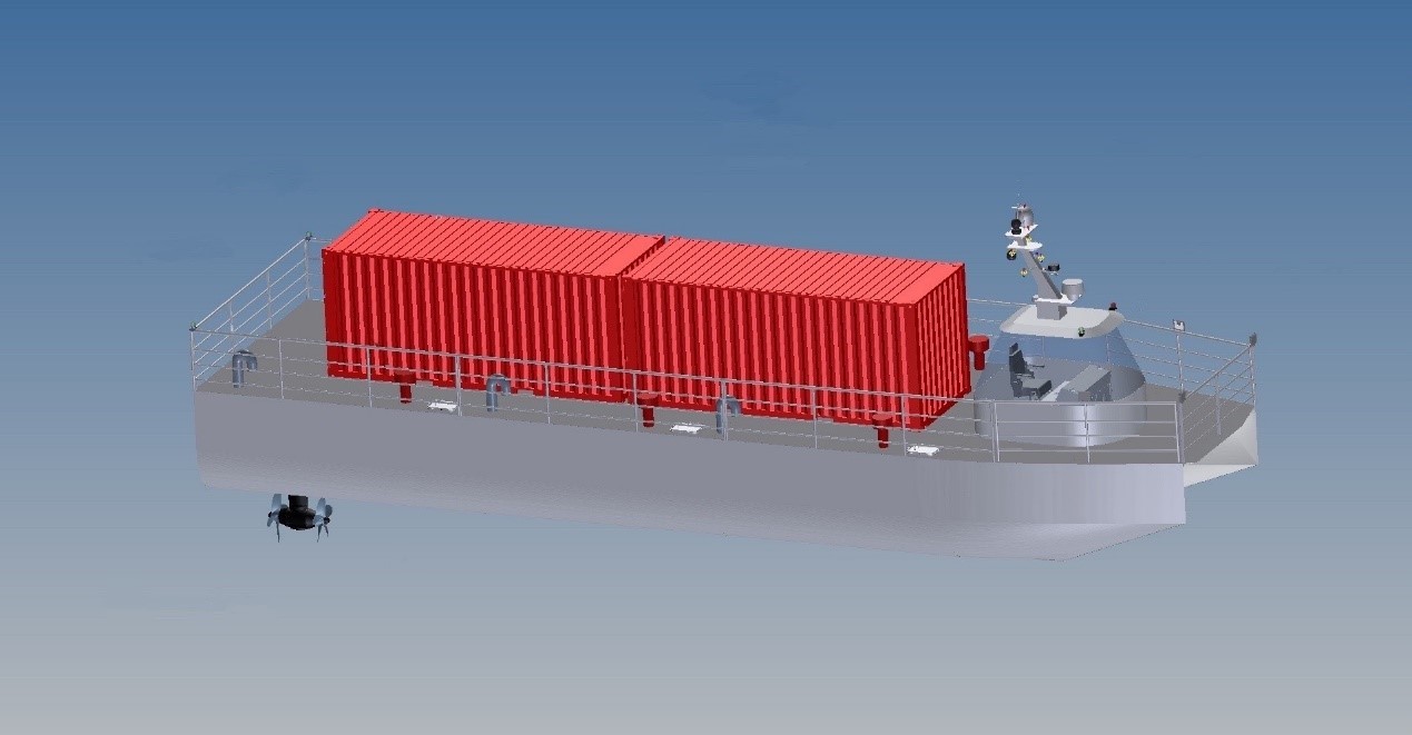 該船總長19.9m,型寬5.5m,設(shè)計吃水0.9m。該無人船設(shè)有2臺200kW全回轉(zhuǎn)主推進(jìn)器、1臺30kW側(cè)推進(jìn)器,采用賽思億基于直流組網(wǎng)技術(shù)的S-Hybrid-R混合動力推進(jìn)系統(tǒng),自動化程度高,系統(tǒng)整體性能好,完全滿足無人船使用要求。
