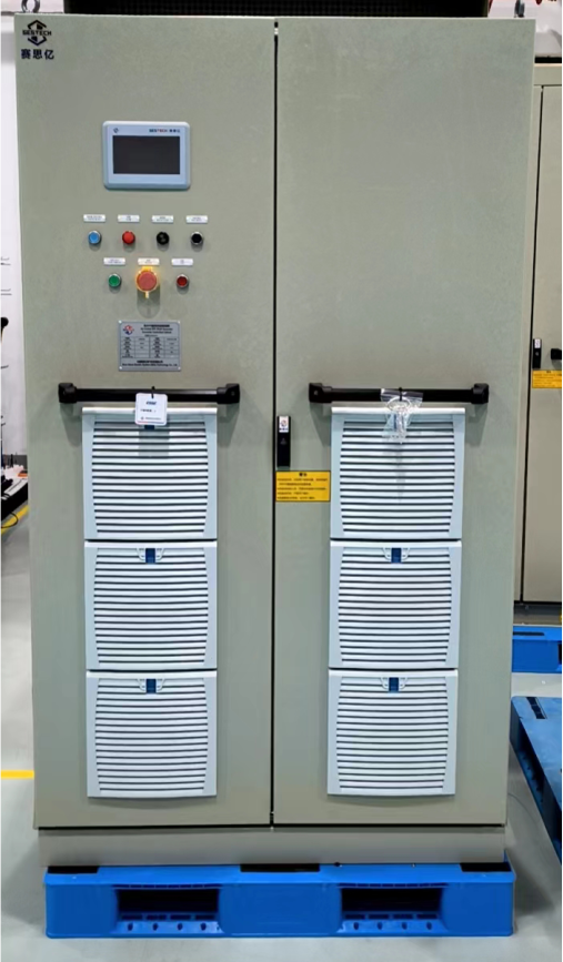 該船動力來源為常規(guī)柴油推進主機,系統(tǒng)配置一臺350kW的軸帶發(fā)電機,軸帶電機通過齒輪箱與主機自由端相連接,確保主機在正常使用轉(zhuǎn)速范圍內(nèi),系統(tǒng)能夠發(fā)出足夠的功率,供應(yīng)全船負(fù)荷。目前變頻電控設(shè)備已發(fā)至客戶指定地點。