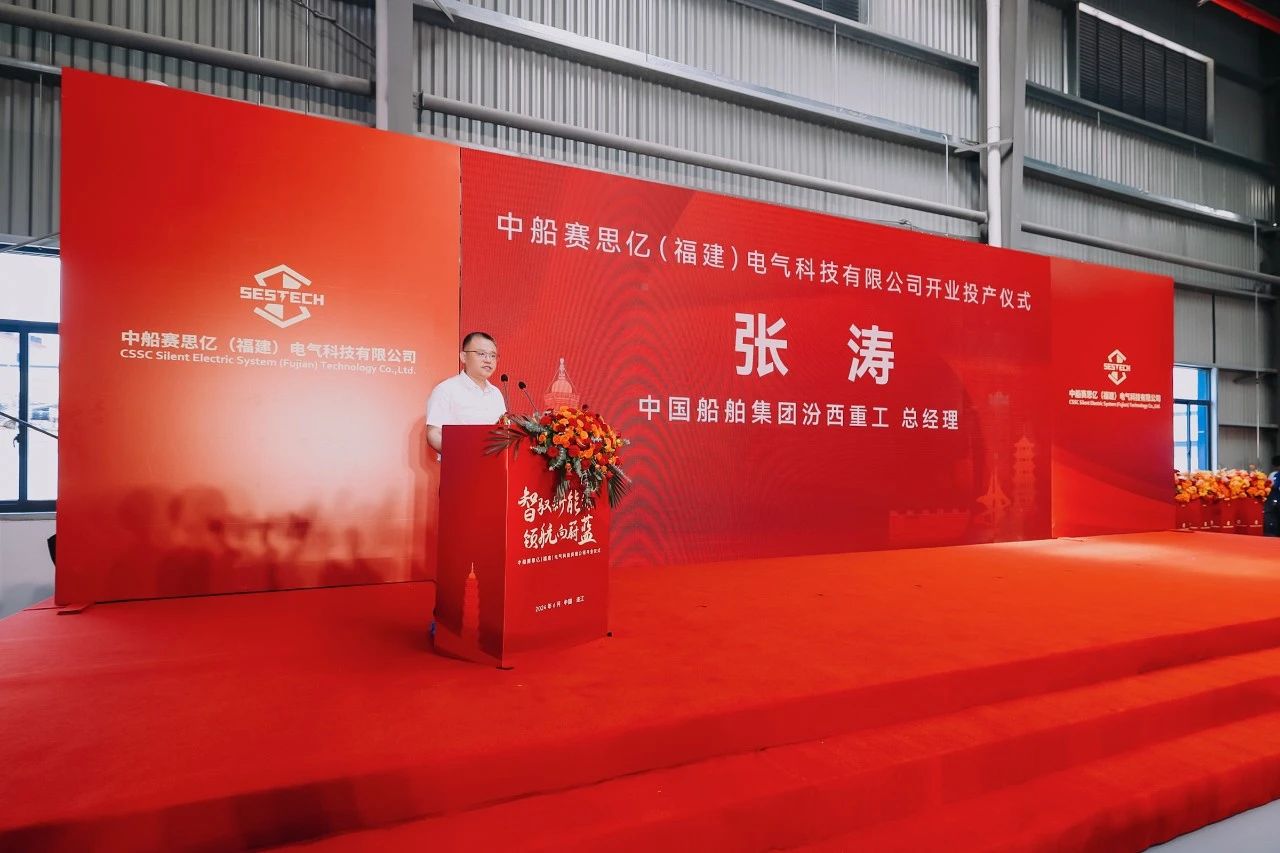 2024年6月30日,中船賽思億(福建)電氣科技有限公司在福建省連江經(jīng)濟(jì)開發(fā)區(qū)山崗工業(yè)園區(qū)內(nèi)順利舉行開業(yè)投產(chǎn)儀式,福建省工業(yè)和信息化廳黨組成員、總工程師施惠財(cái)、福建省工業(yè)和信息化廳二級(jí)調(diào)研員鄭源、福州市工信局黨組成員、一級(jí)調(diào)研員程紅梅,福州水路事業(yè)發(fā)展中心副主任翁國(guó)強(qiáng),福州市招商辦招商四組負(fù)責(zé)人侯偉彬,連江縣人民政府副縣長(zhǎng)張記歡,連江經(jīng)濟(jì)開發(fā)區(qū)主任林承文等領(lǐng)導(dǎo)干部,中國(guó)船舶集團(tuán)戰(zhàn)略規(guī)劃部投資處處長(zhǎng)顧彩銀、中國(guó)船舶集團(tuán)汾西重工有限責(zé)任公司總經(jīng)理張濤、福建省船舶工業(yè)集團(tuán)副總經(jīng)理李振均、中國(guó)船級(jí)社福州分社副總經(jīng)理鄭金東、建造處處長(zhǎng)王堅(jiān)等相關(guān)領(lǐng)導(dǎo),船舶行業(yè)船東、船廠、設(shè)計(jì)院、行業(yè)協(xié)會(huì)等各級(jí)同仁、企業(yè)家代表等出席開業(yè)投產(chǎn)儀式。