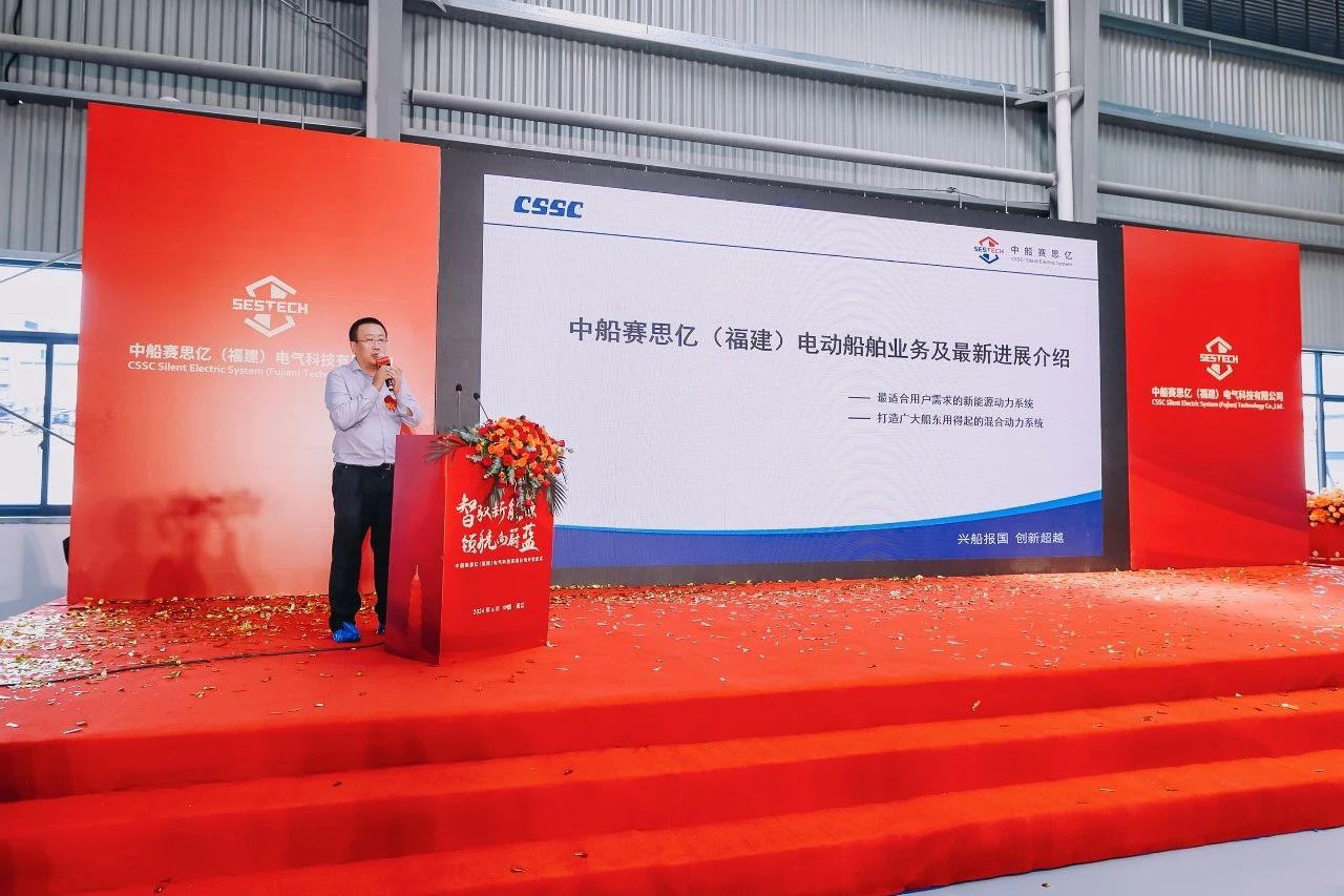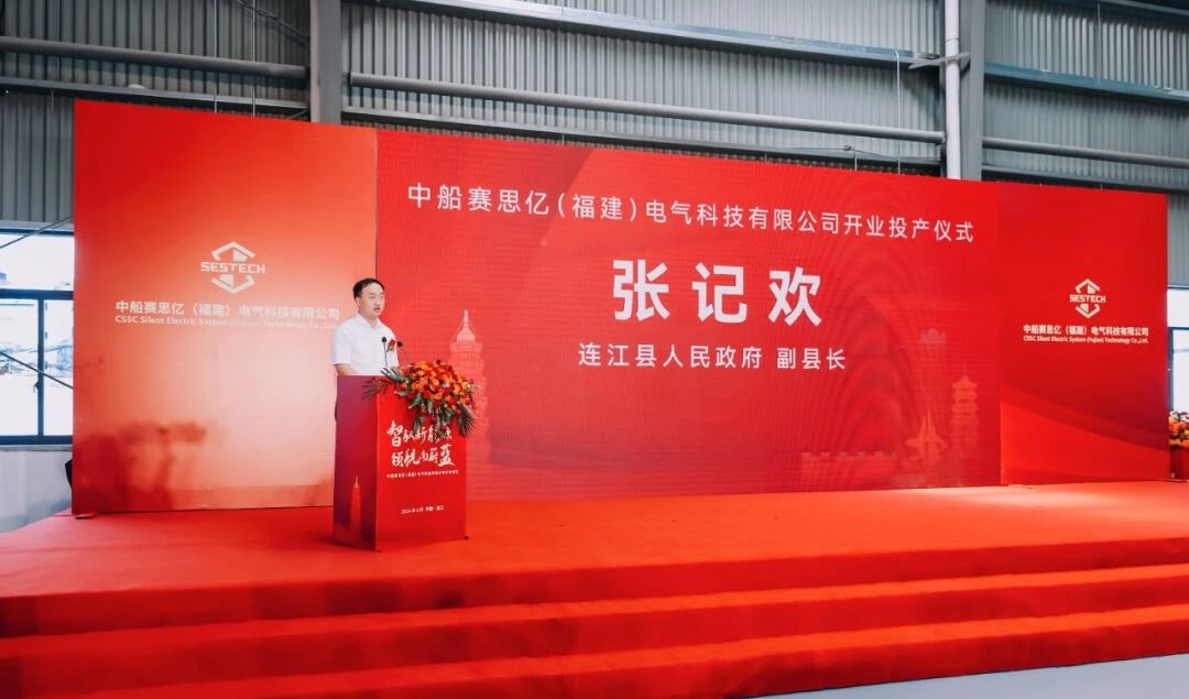 連江縣人民政府副縣長(zhǎng)張記歡發(fā)表講話,他表示,中船賽思億(福建)電氣科技有限公司的落地投產(chǎn),是對(duì)連江發(fā)展新能源船舶產(chǎn)業(yè)的一次重要推動(dòng),是連江加快形成新質(zhì)生產(chǎn)力的一個(gè)縮影,并表達(dá)了對(duì)福建賽思億能夠在連江扎根、成長(zhǎng),并在未來(lái)取得更加輝煌成就的期待。