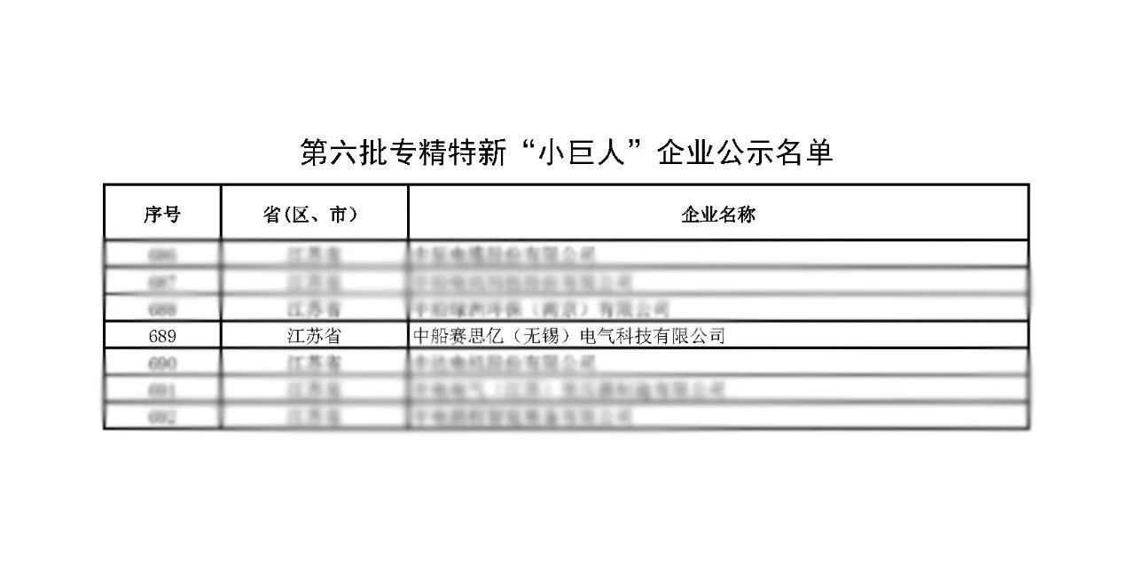 近日,江蘇省工信廳發(fā)布了第六批國(guó)家專精特新“小巨人”企業(yè)名單,中船賽思億(無錫)電氣科技有限公司在列。專精特新“小巨人”企業(yè)是“專精特新”中小企業(yè)中的佼佼者,是專注于細(xì)分市場(chǎng)、創(chuàng)新能力強(qiáng)、市場(chǎng)占有率高、掌握關(guān)鍵核心技術(shù)、質(zhì)量效益優(yōu)的排頭兵企業(yè)。