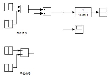 系統(tǒng)希望對(duì)有用信號(hào)進(jìn)行動(dòng)作,但是想消除干擾信號(hào)的影響。為了這個(gè)目的,構(gòu)筑一個(gè)低通濾波器:
