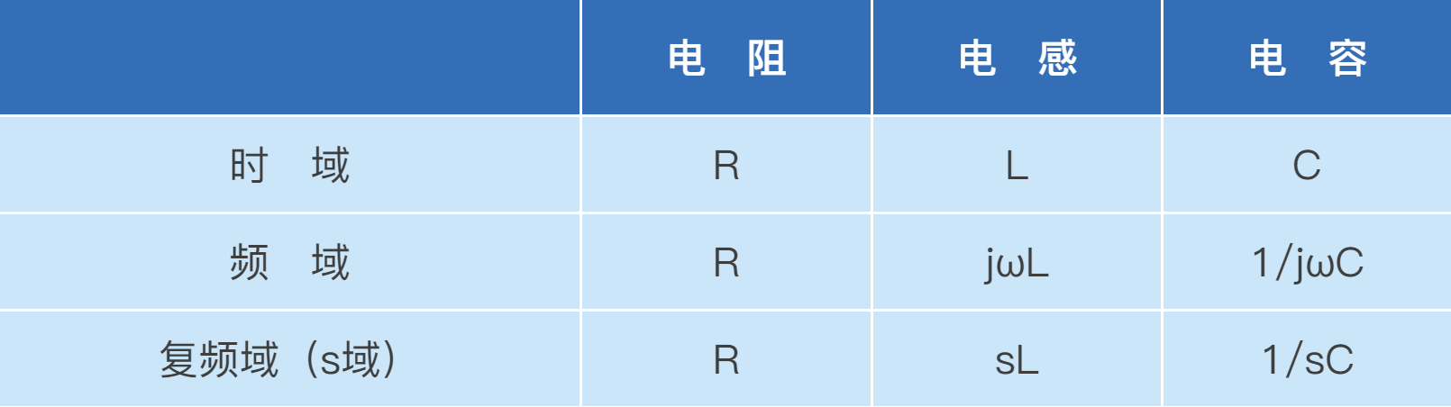 表格 1 電阻、電感和電容