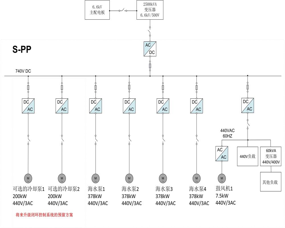 此次脫硫裝置改造項目所采用的直流組網(wǎng)集成式電源系統(tǒng)是一個標準化、緊湊化和模塊化的解決方案,核心電氣設(shè)備應(yīng)用于德國船東,產(chǎn)品認證為DNV•GL,在有限的改造空間內(nèi)通過高集成度的直流組網(wǎng)技術(shù)將洗滌器的變頻供電系統(tǒng)集成到現(xiàn)有的電網(wǎng)中,這樣的系統(tǒng)改進將明顯改善船舶洗滌器改造的工程周期。